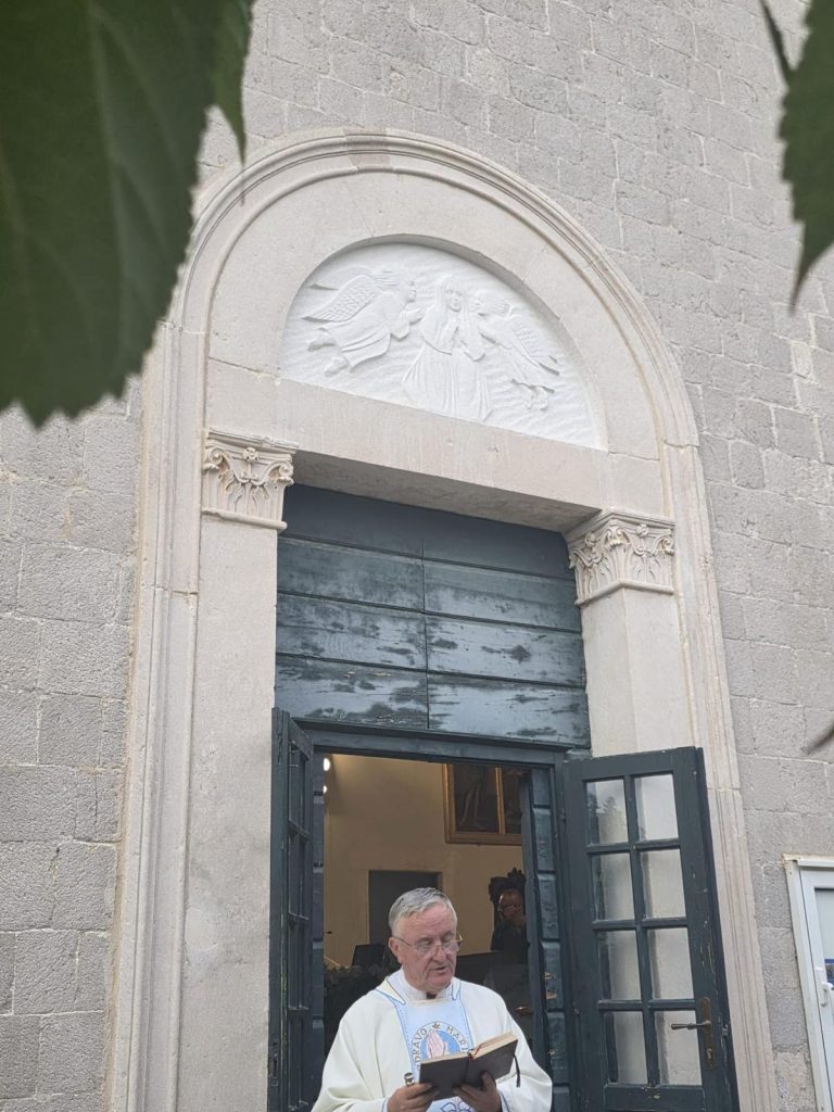 Na ovaj dragi dan smo zakazali blagoslov dva reljefa u luneti iznad vrata na crkvi Gospe od Špilice. Iako je Mala Gospa – rođenje BDM zaštitnica ove crkve, odlučili smo se za Veliku Gospu. Iz više razloga: da se radovi ne otegnu, više ljudi može doći i sl.